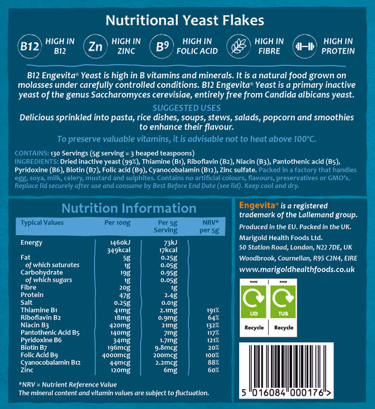 Marigold Vegan Engevita Nutritional Yeast Flakes with Vitamin B12, 650g