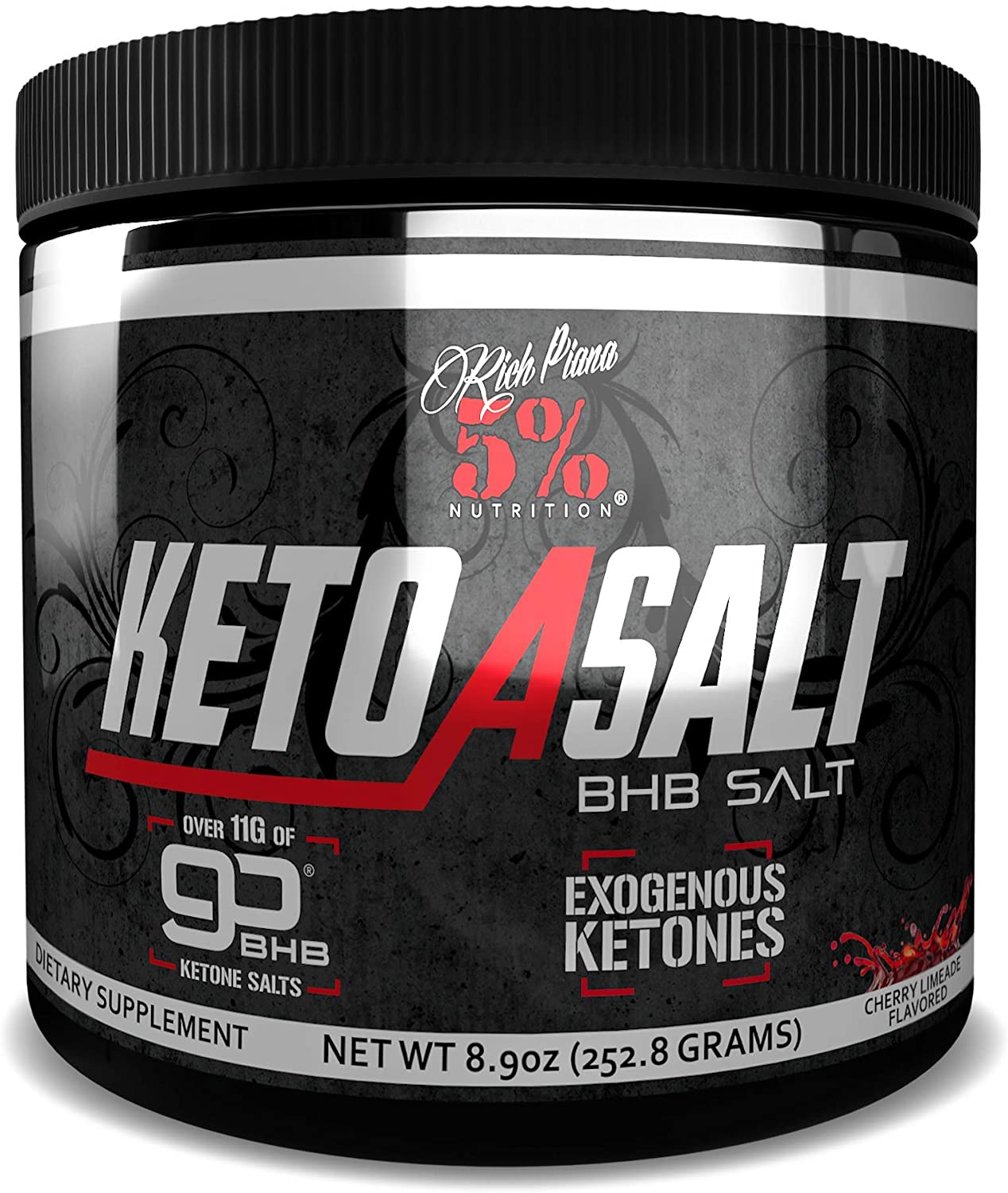 Anyone who has been on a ketogenic diet understands that the body's transition from a glucose-fueled energy source to one fueled by ketones such as BHB (Beta-Hydroxybutyrate), can be very burdensome. Fortunately, 5% Nutrition has formulated the new Keto aSALT to help your body reach ketosis faster, and for those already in ketosis, maintain their ketogenic state. Keto aSALT contains BHB salts that will enhance your body's ability to enter or even re-enter Ketosis. As your body turns into Ketosis, it uses exogenous ketone bodies, such as BHB salts, to create energy as glucose production is minimized. Keto aSALT is the perfect supplement to help you reach higher ketone levels and do it more efficiently, providing you with improved focus and a smoother energy curve throughout the day. Keto aSALT is mega-dosed with high-quality ingredients, including a serving of 11 grams of BHB salts in the form of goBHB. This proprietary blend is known for using a ketone body that provides more energy for your muscles and additional focus for your brain. BHB salts are also considered an electrolyte that is incredibly beneficial when considering that most keto-based dieters often suffer from dehydration. It contains B-vitamin, L-carnitine, and L-Tartrate, all of which help the body transport and convert stored fats into usable energy. Lastly, we have incorporated a powerful antioxidant, CoQ10, to support the energy creation process at the cellular level. Rich Piana 5% Nutrition is known for creating the latest in highly dosed and effective supplement products and has re-delivered with another keto-based product for free. Keto aSALT tastes great and will help you achieve the results you want so you can keep doing everything you need to to reach your goals. goBHB is a registered trademark under the exclusive global distribution of Compound Solutions, Inc.