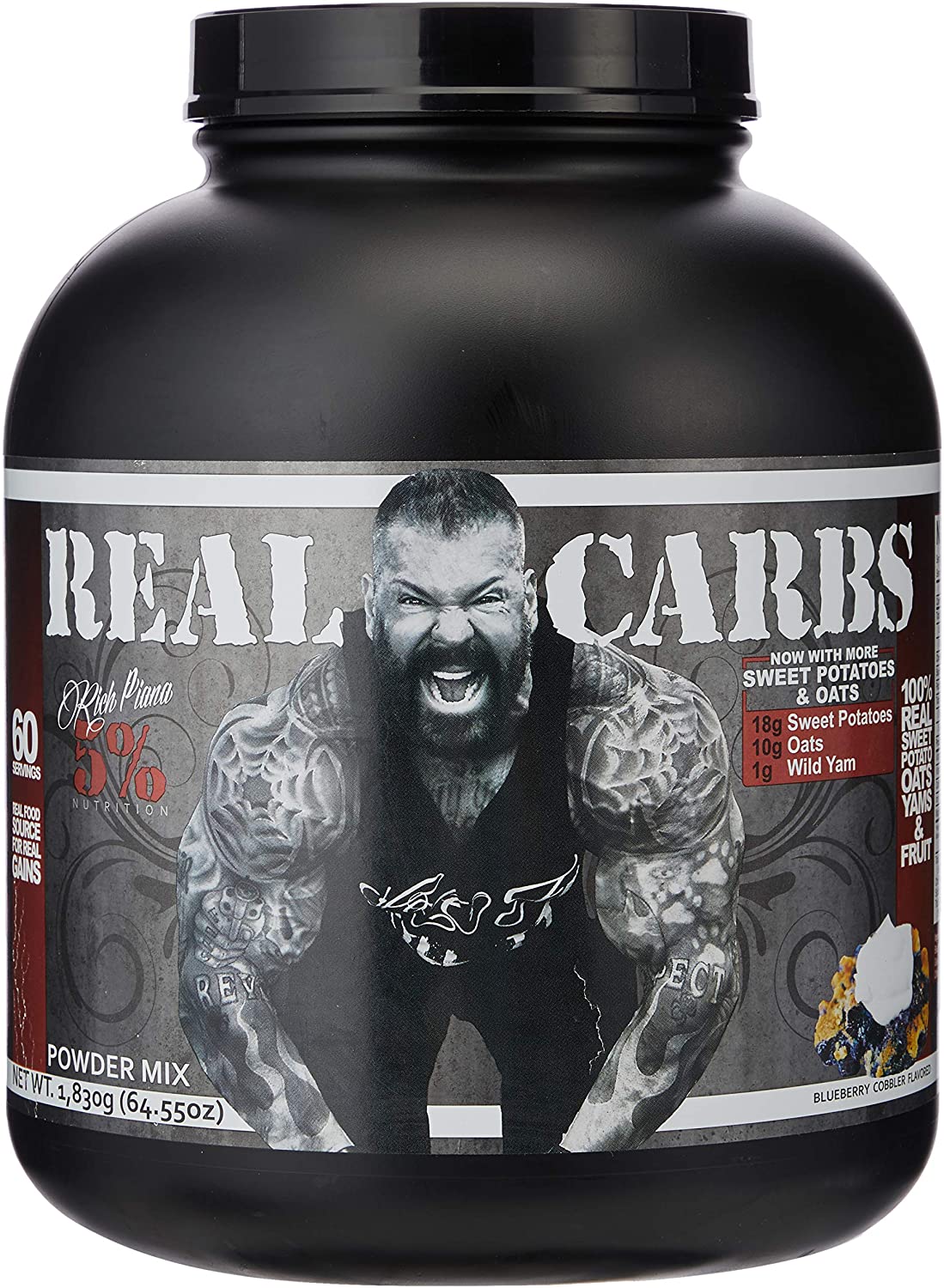 Rich Piana real carbs is a complex carbohydrate source made from real sweet potatoes, oatmeal and dried fruit. Perfect as a pre-workout booster. Provides a versatile option to supplement your diet with high quality carbohydrates. Real carb from 5% rich Piana is available in several flavours. Ideal as a meal replacement.
