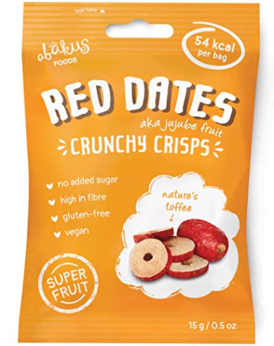 Sweet and chewy red dates/ jujube fruits. This superfood is packed with antioxidants and phytonutrients, and contains 18 out of 24 essential amino acids. Their adaptognic properties can help the body adapt to stress, and thereby uplift the mood, calm the mind, improve sleep and boost the immune system. Enjoyed for overall health and wellbeing for thousands of years in the Far East. Try the red dates/ jujube fruit as a snack or as a natural sweetener in porridge, cooking, baking, smoothies. These are freeze-dried crunchy Jujube slices. The freeze-drying is a gently processing method which helps preserve the nutrients. The texture is crunchy, light, similar to a biscuit despite being entirely made of fruit. A great snack for adults and children alike.