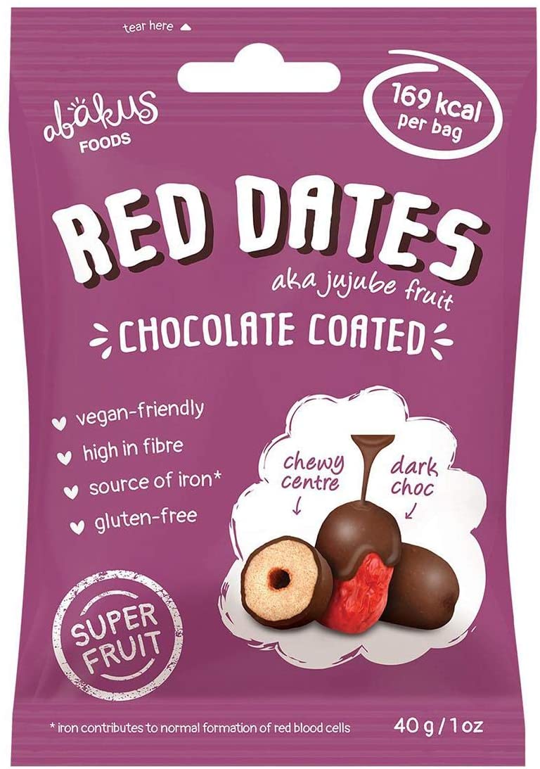 Abakus Red Dates (Jujube), Chocolate Coated 40g (Pack of 12)