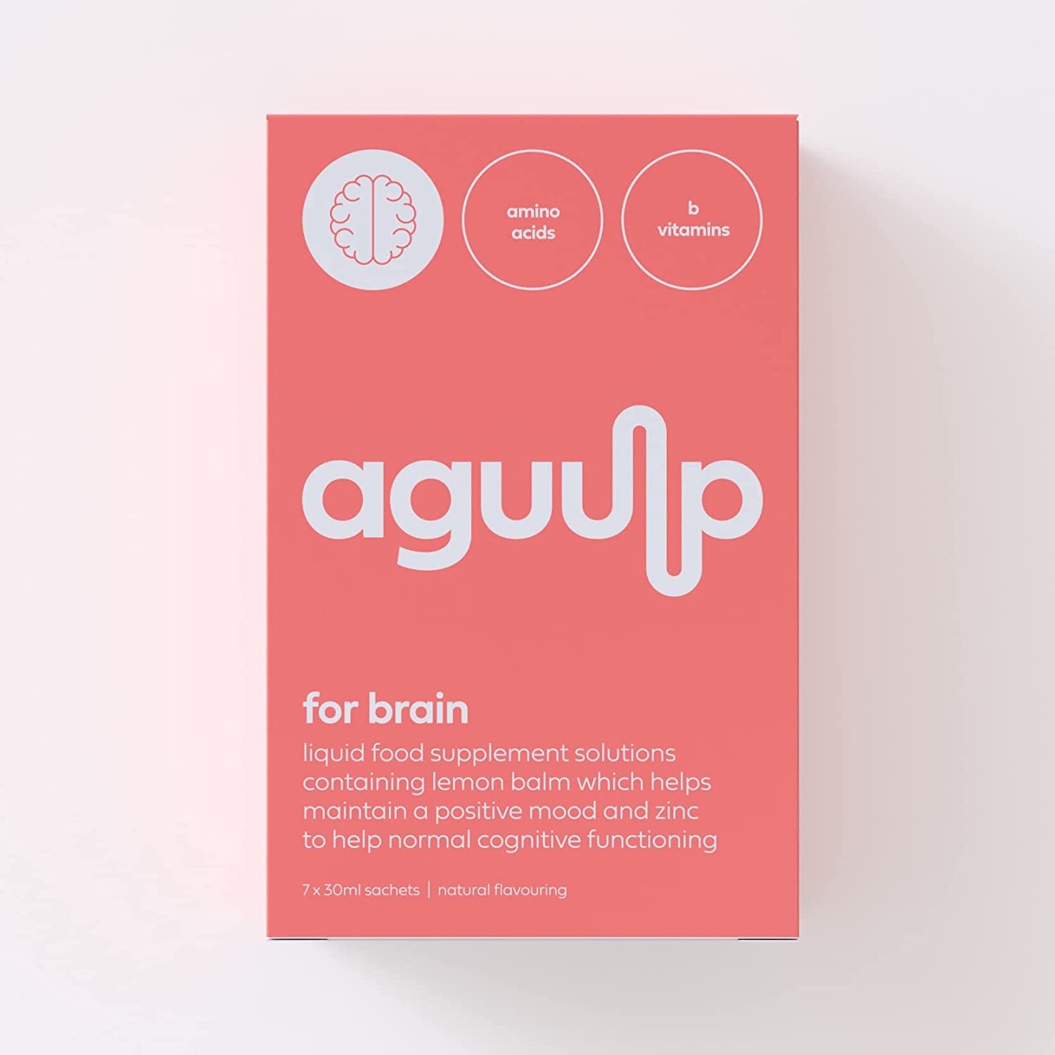 With Aguulp for Brain, you can expect sharper focus and clarity; increased energy and motivation; and improved mood with just one sachet. Using patented liquid liposomal technology for targeted delivery, (think waterproof onesies, for nutrients) Aguulp formulas offer up to 98% absorption. Comprehensive and convenient, at home or on the go, the nutrients you need in just one gulp. The key ingredients: Citicoline The naturally occurring compound Citicoline, plays a crucial role for our Brain. This nootropic agent can help keep your memory sharp, enhance focus and attention and all-round cognitive abilities. It does this by helping to protect the brain from damage through ageing, while also increasing the level of crucial neurotransmitters and increasing mental energy. Amino Acids (Acetyl L-Carnitine, L-Theanine, L- Tyrosine) We have three key Amino Acids in Aguulp for Brain, Acetyl L-Carnitine, L-Theanine & L-Tyrosine. Acetyl L-Carnitine is involved in energy production and has also been shown to reduce the symptoms of type 2 diabetes. L-Theanine, found in green tea, may help relieve stress by influencing your levels of chemicals, like serotonin and dopamine. It can also contribute to increased cognitive performance and deeper sleep. Last but not least, L-Tyrosine is essential for producing dopamine, norepinephrine and adrenaline. Lemon Balm Extract (Melissa Officinalis) Derived from the lemon balm plant, lemon balm extract has been shown to have a calming effect when under mental stress. It can be used to help reduce symptoms of anxiety and improve mood. It can also help improve cognitive health by increasing levels of concentration and focus.