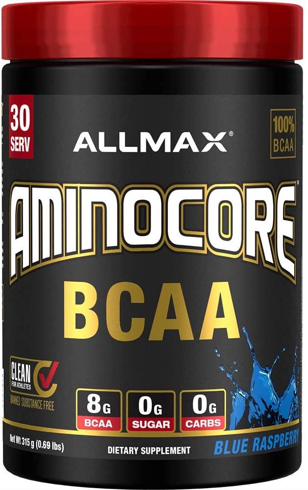 30 Serv100% BCAAClean for AthletesBanned Substance Free8 g BCAA0 g Sugar0 g CarbsDietary SupplementNatural & Artificial FlavorsSweetened with Sucralose and Acesulfame PotassiumTested for Banned Substances - Informed-Choice.Org - Trusted by SportcGMP Registered FacilityLab Tested - Every LotSoy FreeGluten Free TestedThe Dominant Muscle BuilderWhy Use Branched Chain Amino Acids (BCAA)? Supplementation is crucial for athletes seeking to build muscle. BCAA are the primary building blocks for muscle growth, reduced muscle breakdown and facilitation of fat loss. Unlike other amino acids, BCAA aminos - leucine, valine, and isoleucine - cannot be produced by the body, so must be provided through diet or supplementation.Why Use Allmax Aminocore? Not all BCAA are created equal. Aminocore delivers 8.18 g of BCAA in a 9:6:5 ratio clinically proven to provide a 350% increase in activation of muscle growth signals! The purest, free-form source of BCAA, Aminocore has no added fillers or non-BCAA aminos. Aminocore's 9:6:5 BCAAs are 100% pure prior to flavoring. Typical 2:1:1 sources contain impurities resulting in cloudiness, oily foam, sediment, and the worst - a harsh bitter taste! Aminocore is the cleanest, purest, best-tasting BCAA supplement money can buy!Intelligent Diet Support. Aminocore feeds your muscles during diet and exercise to dramatically decrease muscle loss. Additional B-Vitamins further assists in enhancing metabolic power and improving energy levels.The Science of Muscle Growth. Aminocore 9:6:5 BCAA ratio is clinically proven to increase the activation of muscle growth signals. Scientific studies have identified mTor-p70S6K as the trigger directly responsible for extreme muscle growth. Supplementing with BCAA has been shown to activate increased mTor-p70S6K cellular signaling responsible for muscle growth. The result: you build and retain more hard earned lean muscle and maintain a higher metabolism. Combined with intense resistance training, research has shown that 8,180 mg of BCAA in a 9:6:5 ratio increase signaling within muscle cells to upregulate protein synthesis (growth) by 350%. Research conducted at the Nobel Prize winning Karolinska Institute in Stockholm, Sweden.
