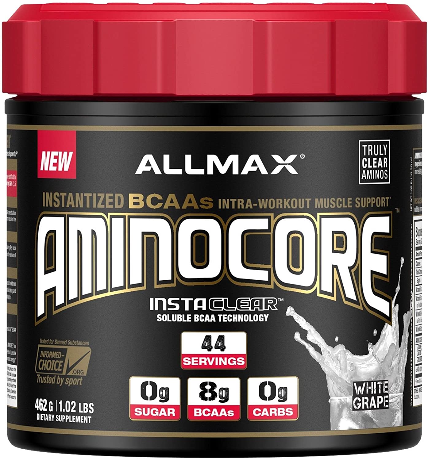 30 serv100% bcaaclean for athletesbanned substance Free8 g BCAA0 g Sugar0 g carbs dietary supplement natural & artificial flavorssweetened with Sucrose and Acesulfame Potassium tested for banned substances - Informed-Choice.Org - trusted by sportcgmp registered facilitylab tested - Every lot soy free gluten free Tested the dominant muscle Builder why use branched chain amino acids (BCAA)? supplementation is crucial for athletes seeking to build muscle. Bcaa are the primary building blocks for muscle growth, reduced muscle breakdown and facilitation of fat loss. Unlike other amino acids, BCAA Aminogen - leucine, valine, and isoleucine - cannot be produced by the body, so must be provided through diet or supplementation.Why use all max amino core? Not all BCAA are created equal. Amino core delivers 8.18 g of BCAA in a 9: 6: 5 ratio clinically proven to provide a 350% increase in activation of muscle growth signals! The purest, free-form source of BCAA, amino core has no added fillers or non-bcaa aminos. Aminocore's 9: 6: 5 BCAAs are 100% pure prior to flavouring. Typical 2: 1: 1 sources contain impurities resulting in cloudiness, oily foam, Sediment, and the worst - A harsh bitter taste! Amino core is the cleanest, purest, best-tasting BCAA supplement money can buy!intelligent diet support. Amino core feeds your muscles during diet and exercise to dramatically decrease muscle loss. Additional B-vitamins further assists in enhancing metabolic power and improving energy levels.The science of muscle growth. Amino core 9: 6: 5 BCAA ratio is clinically proven to increase the activation of muscle growth signals. Scientific studies have identified mtor-p70s6k as the trigger directly responsible for extreme muscle growth. Supplementing with BCAA has been shown to activate increased mtor-p70s6k cellular signaling responsible for muscle growth. The result: You build and retain more hard earned lean muscle and maintain a higher metabolism. Combined with intense resistance training, research has shown that 8, 180 mg of BCAA in a 9: 6: 5 ratio increase signaling within muscle cells to up-regulate protein synthesis (growth) by 350%. research conducted at the Nobel prize winning karolinska institute in Stockholm, Sweden.