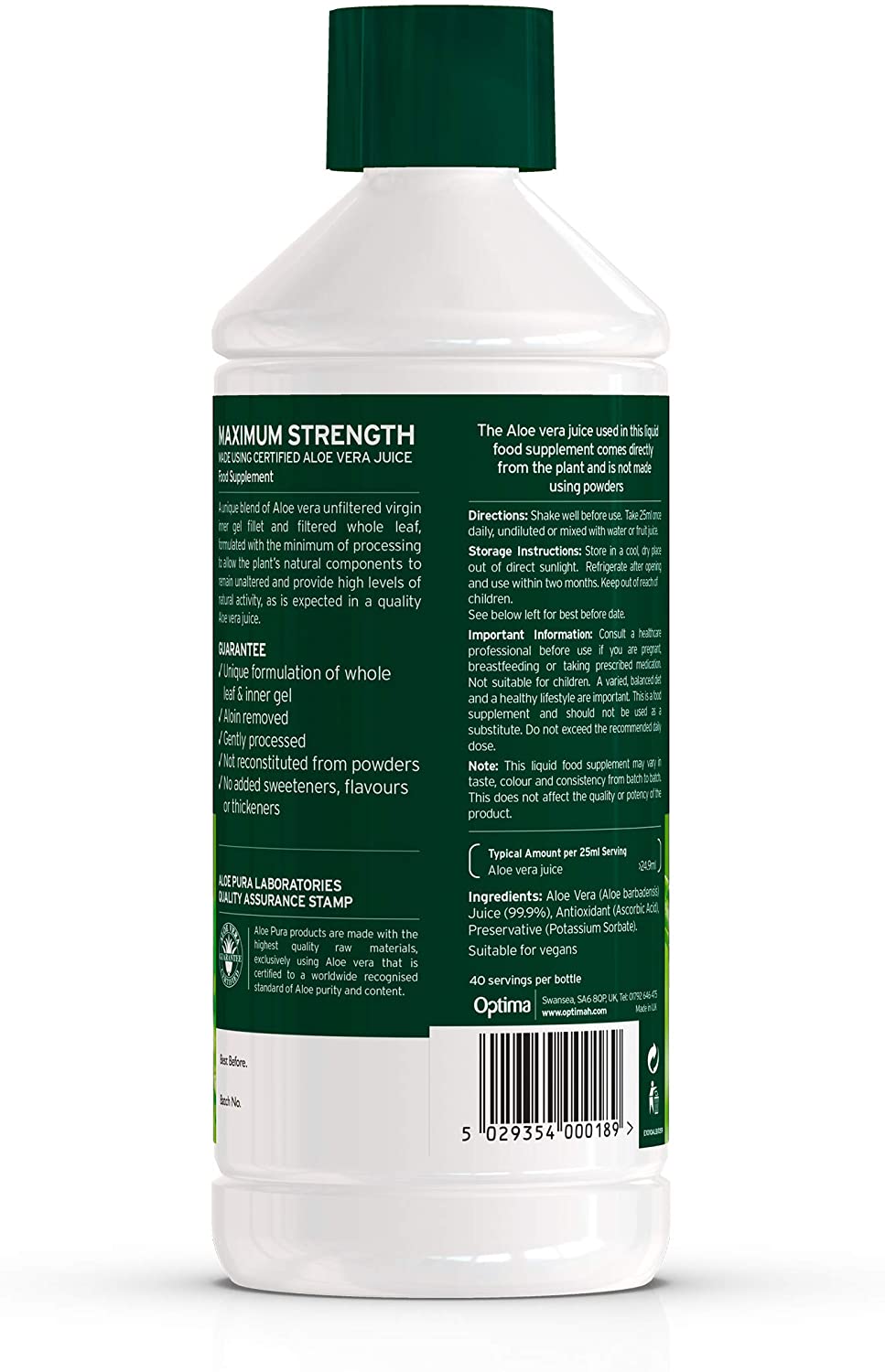 Natural Aloe Vera Juice (99.9%), Antioxidant: Ascorbic Acid; Preservative: Potassium Sorbate.