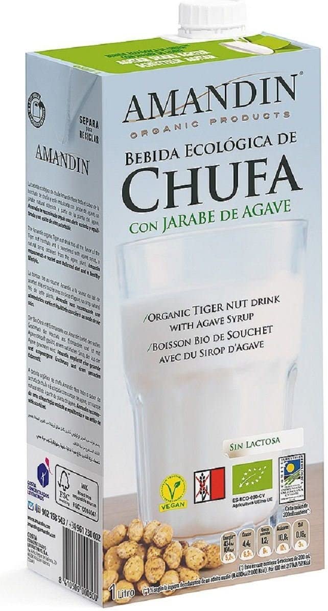 Amandin Organic Tiger Nut Drink With Agave Syrup 1Ltr (Pack of 6)
