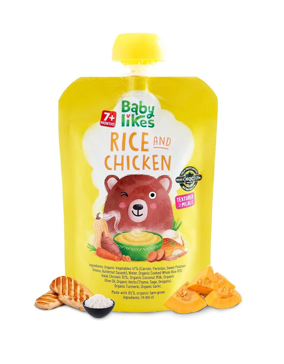 Their Rice and Chicken Baby Meal has ingredients, flavours and textures suitable for babies from 7 months. This baby meal is dairy-free. It's one the best start in life with their Baby Likes Baby Puree. Made from the finest halal chicken with organic veggies, fruits, and rice, their puree is a delicious and nutritious meal that will introduce your baby to a world of flavours.