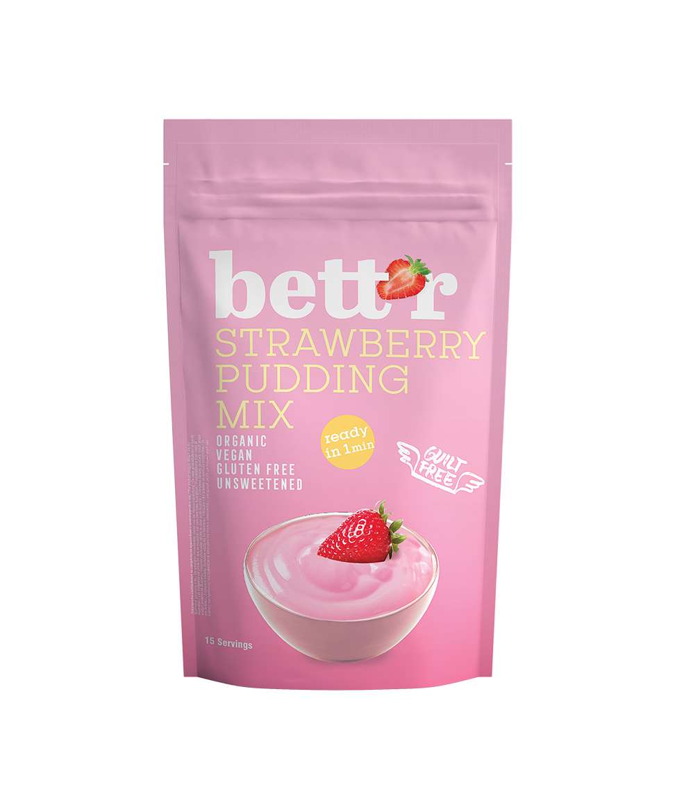 Do you remember the taste of strawberry pudding from your childhood Now you can make a healthy cream with an irresistible fruity flavour in just a minute with Bett’r’s NEW Pudding Mix!. The recipe does not contain gluten and artificial flavours but a few ingredients only. It is the strawberry powder that gives the fruity taste and aroma. It makes the product completely natural and perfect for all dessert lovers. Bett’r pudding mixtures are unsweetened so that you can add a sweetener of your choice. They recommend you to use agave syrup, coconut sugar, erythritol, muscovado sugar, dates powder or others.
