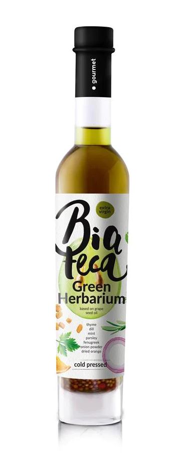 Natural gourmet dressing. Made by a family company, using locally sourced raw materials.Green Herbarium is based on cold-pressed grape seed oil and a mix of fragrant herbs.A unique mix rooted in tradition. Ideal for bread dipping, poultry, pizza, meat, grilled vegetables, especially potatoes. Marinade, grill, saute, enhance with a sustainable dressings.