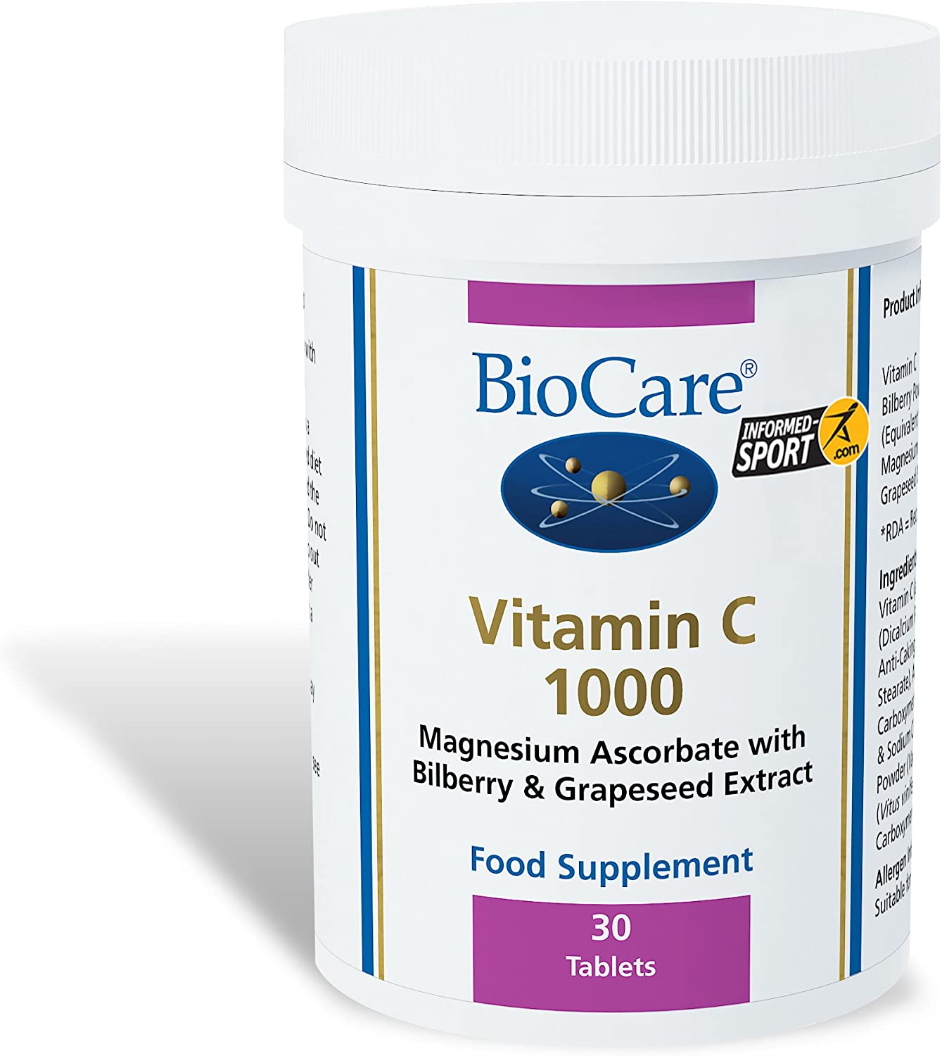 Vitamin C 1000 provides 1000mg of magnesium ascorbate (a low-acid buffered form of vitamin C to reduce stomach irritation) together with synergistic antioxidants in the form of bioflavanoids bilberry and grapeseed extract.