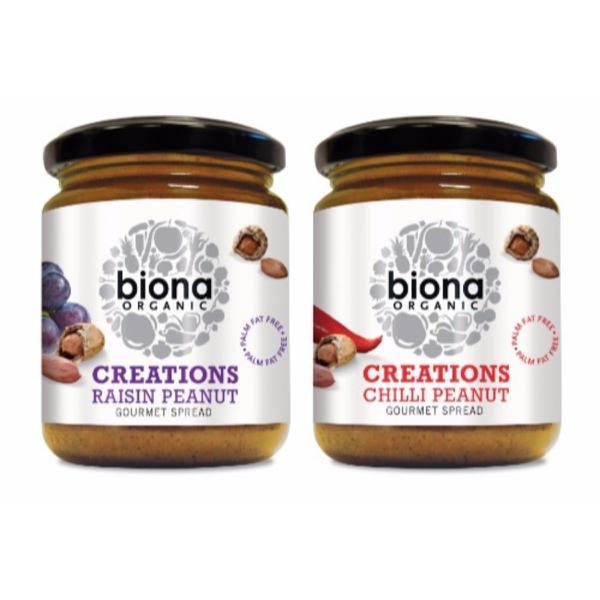 Biona Organic Raisin Peanut Gourmet Spread 250 g Raisin peanut gourmet spread. Free from palm fat. Certified organic ingredients