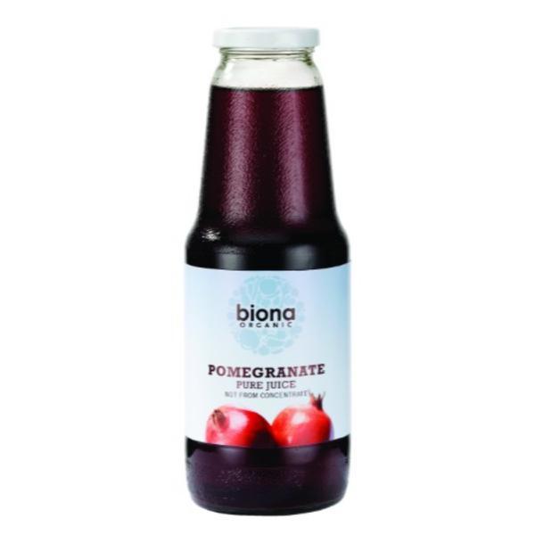 Biona Organic Pomegranate Juice has certified organic ingredients. Start your day with zest: The vibrant ruby red pomegranate juice has an invigorating taste for a little wake-up call at breakfast. Specially selected organic farmers press freshly harvested plump pomegranates for a rich slightly tart taste. Serve our juice chilled alongside a salad at lunch, add to citrus juices to create an exotic punch or use it mixed with your favourite spirit for a thirst-quenching summer cocktail. Pomegranates are a good source of fiber, as well as containing high levels of vitamins A, C and E, iron and other antioxidants. Available in 1 Liter bottle.