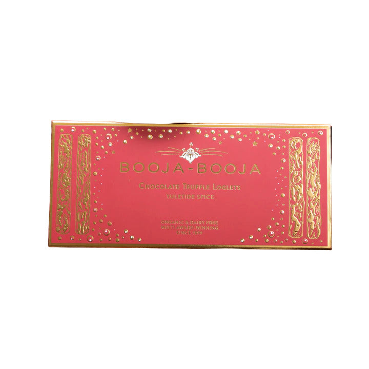 Booja-Booja Yuletide Spice Truffle Loglets 115g is a festive treat that consists of ten long melt-in-the-mouth chocolate truffle loglets rolled in rich chocolate flakes. They are infused with a festive blend of yuletide spices.