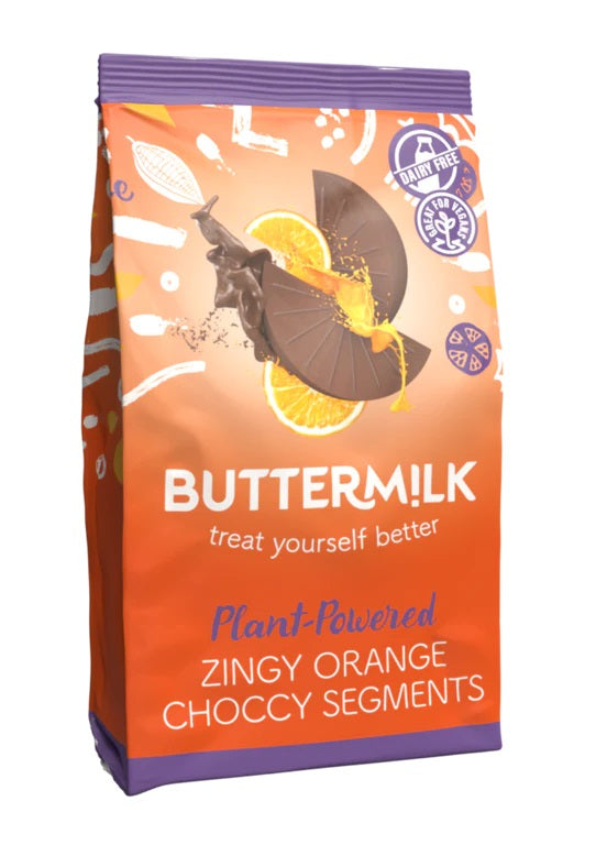 Indulge in the zesty delight of Buttermilk's Zingy Orange Choccy Segments. These gluten-free & vegan treats are bursting with citrusy goodness. Perfect for snacking or adding a tangy twist to your favourite recipes. Savor the irresistible combination of orange and chocolate.