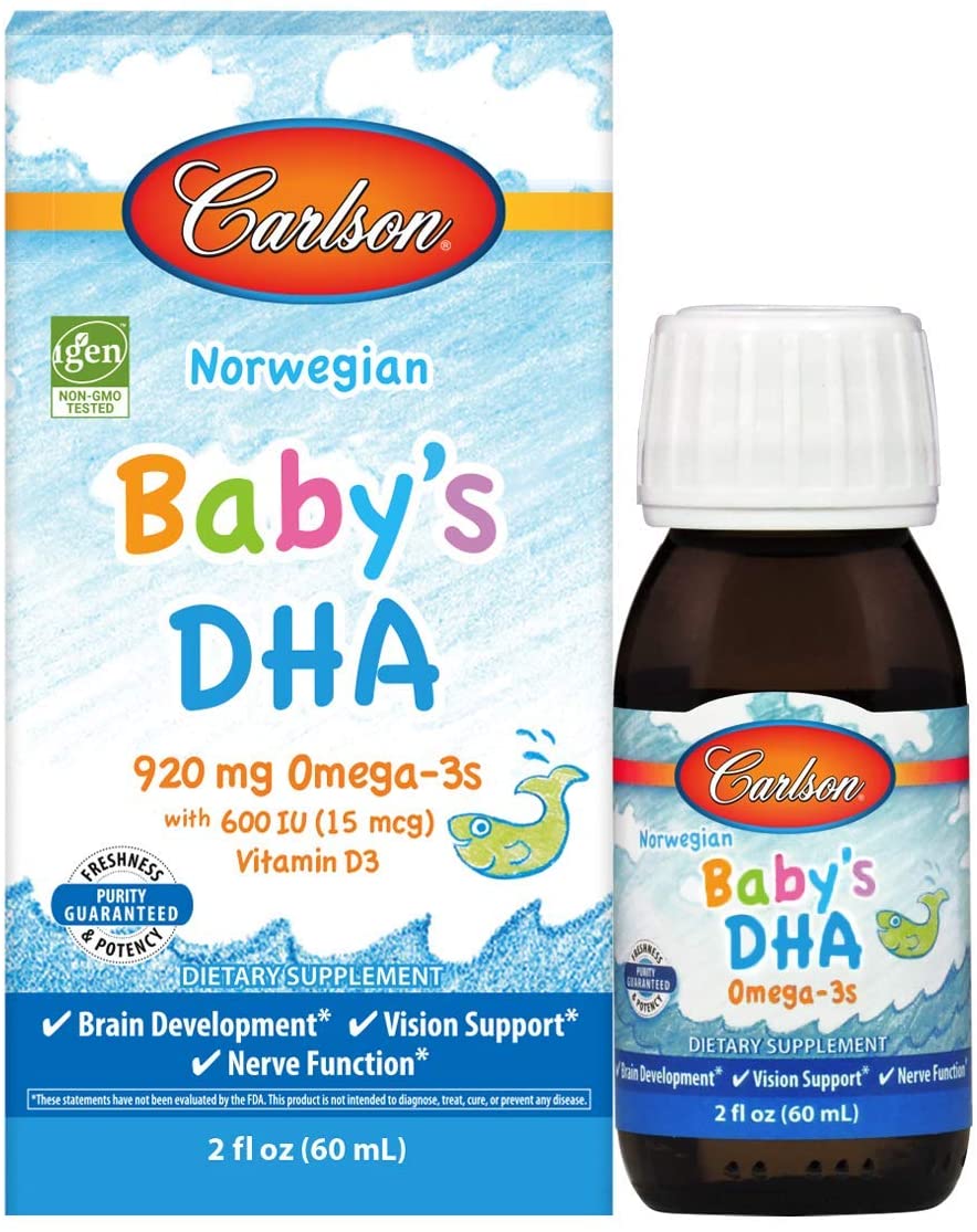 Promotes brain, vision, and nervous system health and development- up to 1, 100 mg of omega per serving and 400 IU of vitamin D3, the recommended daily intake of the American Academy of pediatrics- made from wild caught, sustainably sourced Norwegian Arctic cod- ifos and igen non-gmo certified- freshness, potency, and purity guaranteed The beneficial Omega-3 DHA supports healthy brain, vision, and nervous system development in growing children and is especially important during their first two years, as their brains nearly double in size. Unfortunately, many infants don't get adequate amounts of DHA through breastfeeding or formula alone. Baby's DHA is a great way to fill this nutritional gap and ensure your children receive the high quality DHA their growing bodies, and brains, need.? (easy dosing with the included syringe.