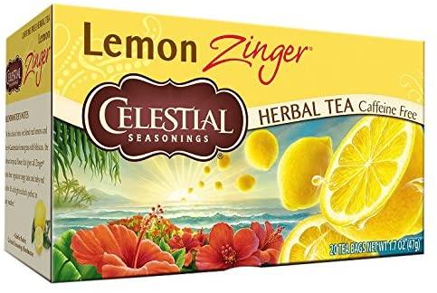 Celestial Seasonings Lemon Zinger Herbal Tea is a blend of real lemons and lively Guatemalan lemongrass with hibiscus, which gives all zinger teas their signature tangy taste and ruby-red colour. A bright tea that's perfect in any weather.