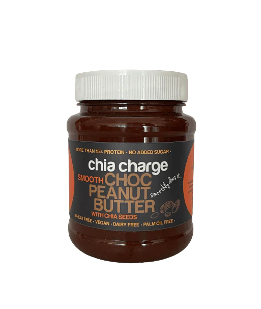 Choc Peanut Butter and Chia Seeds - Peanuts, Cocoa Mass, Maple Syrup, Rapeseed Oil, Chia Seeds (7.8%), Sea Salt Flakes.
