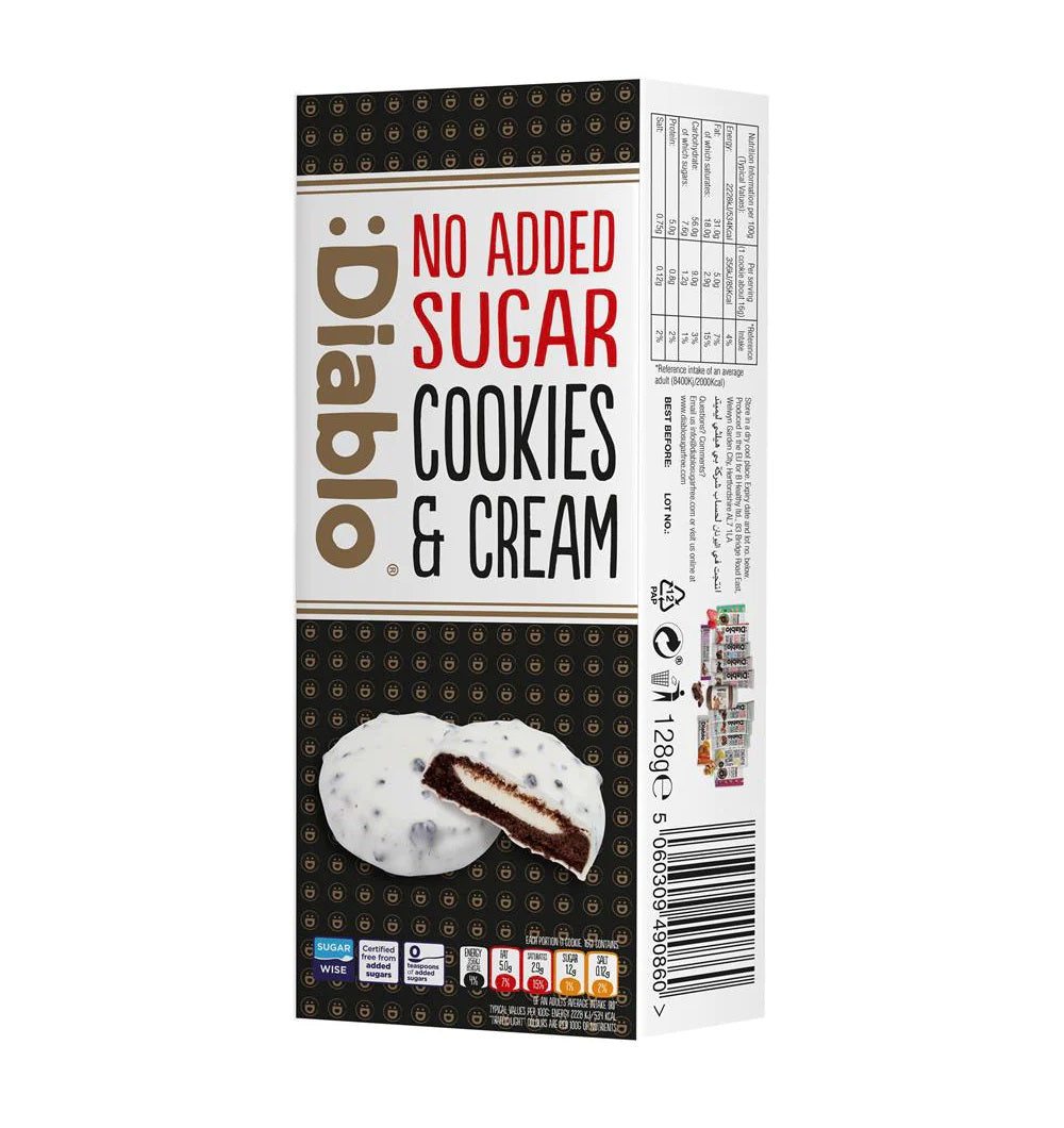 Diablo Sugar Free White Chocolate Cookies & Cream 128g (Pack of 27)