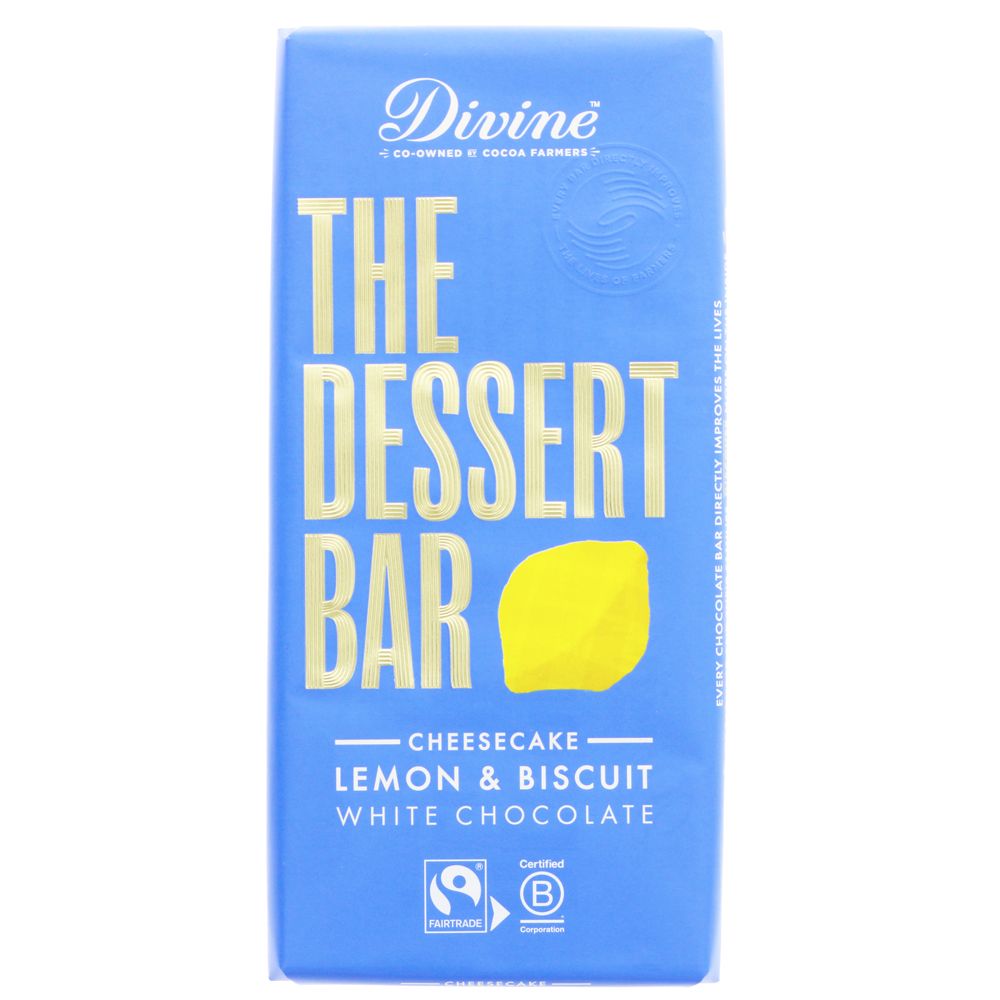 Indulge in the perfect balance of sweet and tangy with Divine's Lemon Cheesecake Bar. This delectable treat captures the essence of a classic lemon cheesecake in a convenient chocolate bar format. Creamy white chocolate envelops a burst of refreshing lemon flavor, complemented by crunchy biscuit pieces.