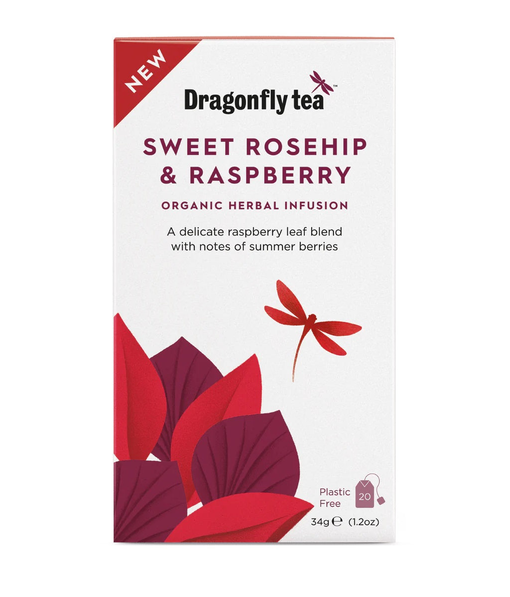 Dragonfly Sweet Rosehip & Raspberry Organic Herbal Tea is a refreshing vibrant blend that brings together the delicate floral notes of rosehip with the bright tangy sweetness of raspberry. This organic tea is crafted with carefully selected high-quality ingredients that provide both a soothing and rejuvenating experience.