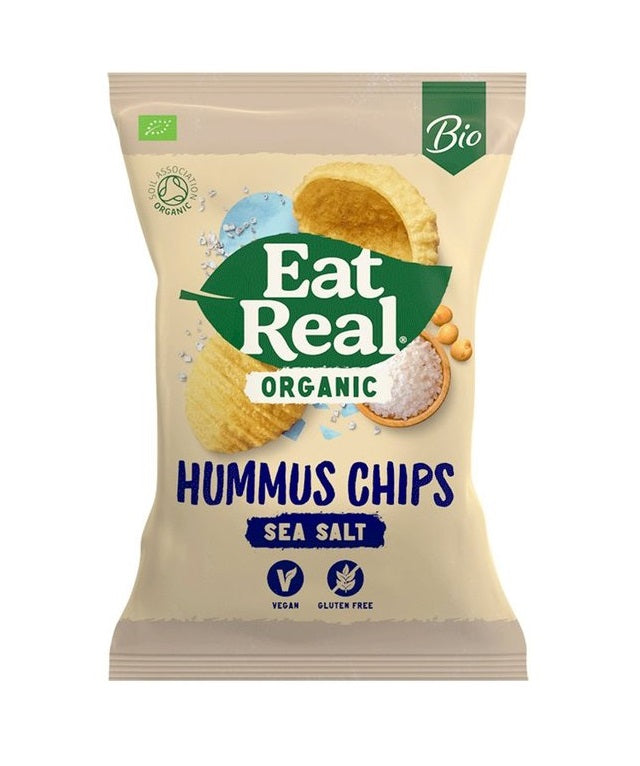 The Eat Real Hummus Chips Sea Salt 110g are gluten-free, kosher, and suitable for vegans. The main ingredients include chickpea flour and potato. Whether you're craving a guilt-free snack for yourself or entertaining guests, It is an ideal choice, offering a nutritious and delicious. Enjoy the simple pleasure of real ingredients and delightful taste in every crunchy morsel.