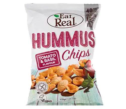 Eat Real Hummus Chips are an alternative and healthier crisp-like Snack. Ideal for lunchboxes, these Gluten Free chips are as savoury as potato based snacks, but have 48 percent less fat.