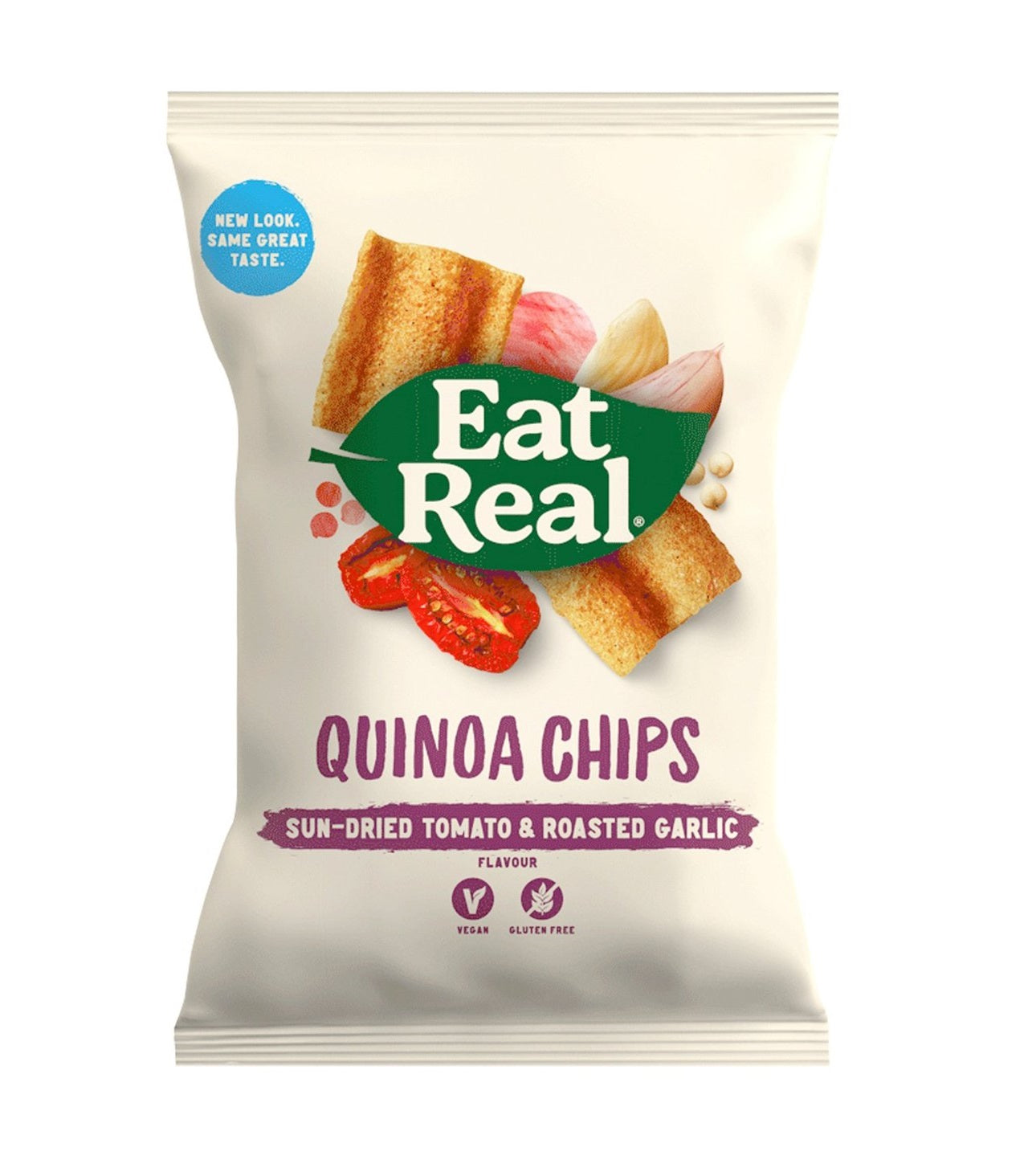 Eat Real Quinoa Chips - Sundried Tomato & Roasted Garlic, harnessing this "Supergrain" source to Eat Real's ever-expanding range of snack products, Eat Real is delighted to bring these tasty light Quinoa Chips in mouthwatering flavours. Made from real, natural ingredients with 21% Quinoa and no added nasties (artificial flavourings, colourings and preservatives), Eat Real have something for the whole family that can be enjoyed at any time of the day.