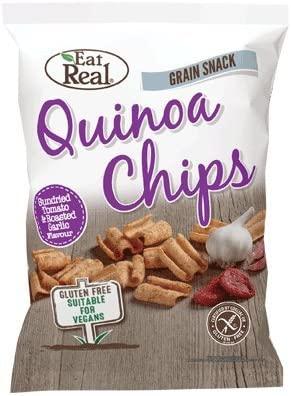 Eat Real Quinoa Sundried Tomato & Roasted Garlic Chips are wonderful quinoa chips that have a wonderful flavour to tingle your taste buds. The Quinoa Sundried Tomato & Roasted Garlic Chips contain a unique blend of ingredients including Quinoa Flour that has been infused with a touch of sundried tomato & roasted garlic seasoning. Made with grains that are free of Gluten Suitable for Vegans Ideal for the whole family Great for dipping and sharing