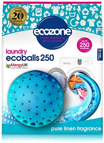 Ecozone Ecoballs 250 pure Linen are an innovative alternative to your usual laundry detergents, be that liquids or tablets. How do they work? It's simple; the secure spherical casing with lock mechanism is filled with two types of small pellets that are made from a formulation of minerals and other natural plant-based cleaning agents. All you'll need to do is simply place the Ecozone Ecoballs 250 pure Linen into your washing machine along with your clothes and that's it! Easy! The pellets then get to work, lifting dirt from the material and working to keep the water soft to ensure an effective clean. New to the range, the blue Ecoballs are in a wonderfully fresh pure Linen fragrance, allergy UK approved, hypoallergenic and residue free so they are kind to your skin too. To further add to their eco credentials, they effectively clean on cool temperatures and can be used without a rinse cycle which will cut down on water and wash time.