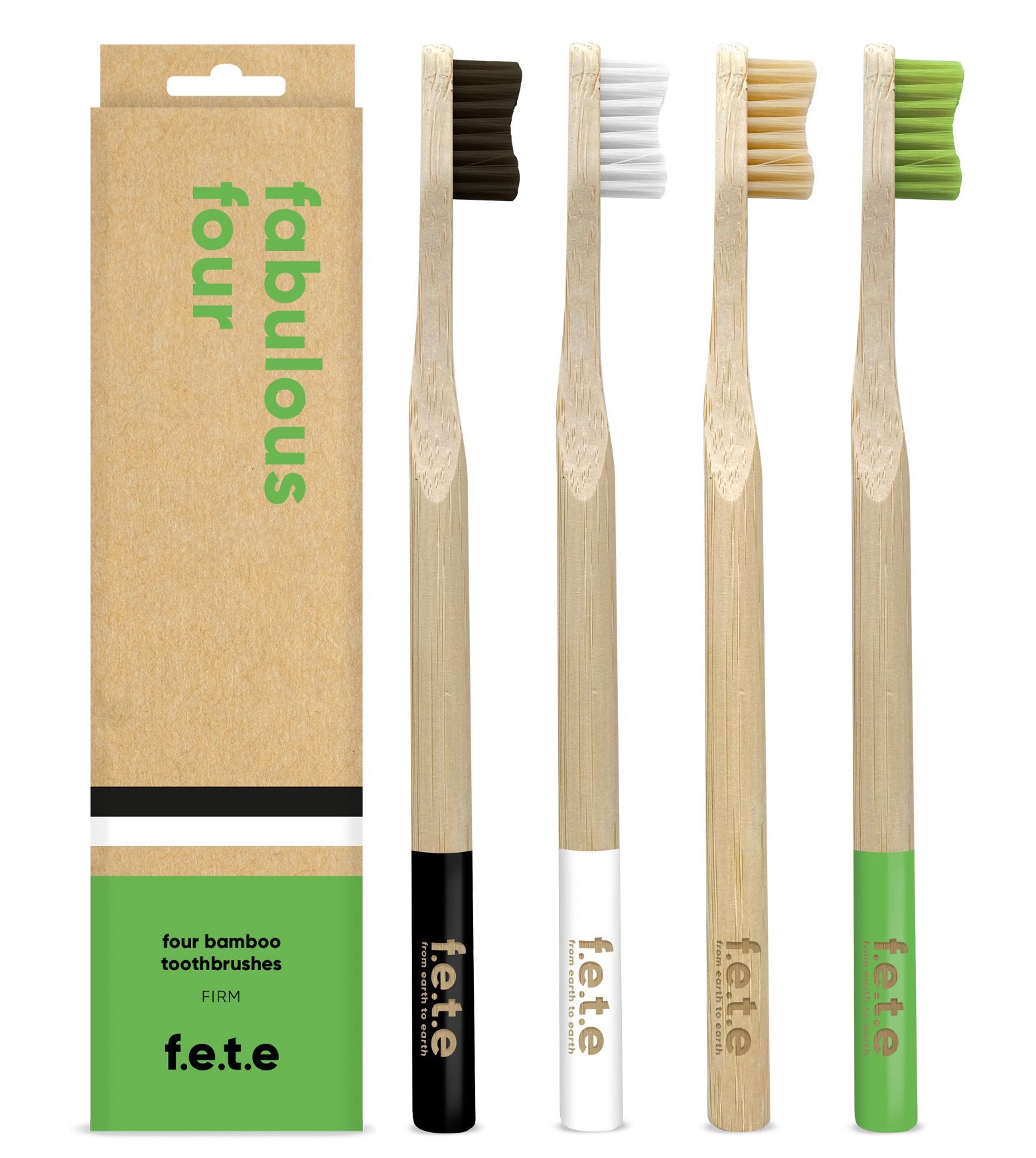 F.E.T.E Bamboo Toothbrush Fantastic Family Pack (2xMedium Adult + 2xChild)