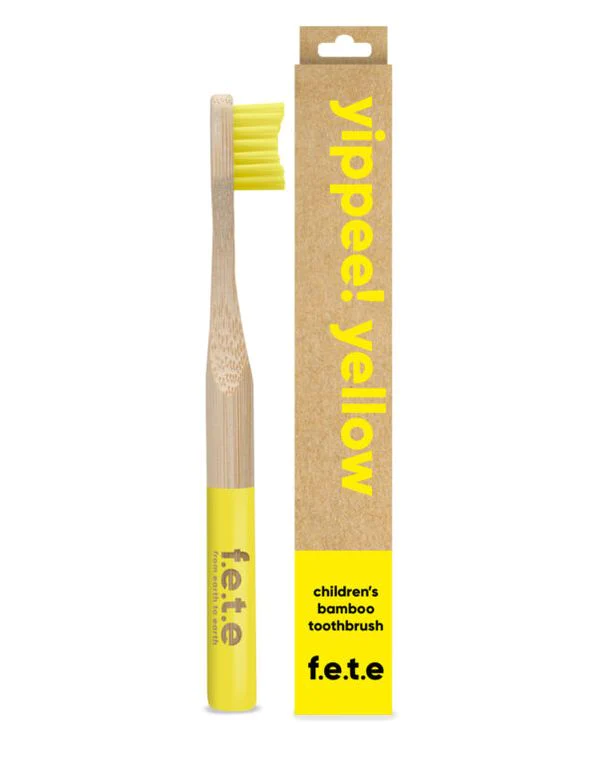 From earth to earth Yippee! Yellow - Childern toothbrush is made from sustainable materials and has a yellow handle. It has a soft head that is gentle on gums and teeth, and it is biodegradable and compostable, so it is good for the environment.