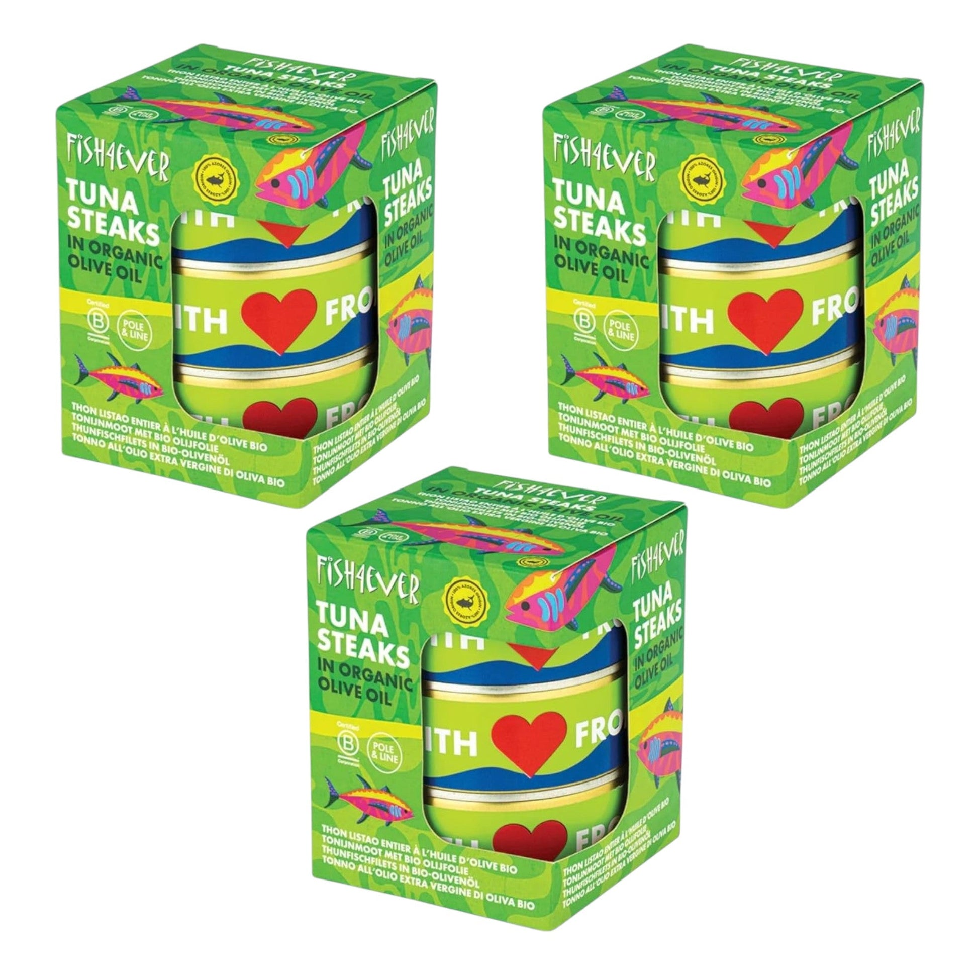 Fish4Ever Azores Skipjack Tuna Steaks in Organic Olive Oil 160g (Pack of 9)
