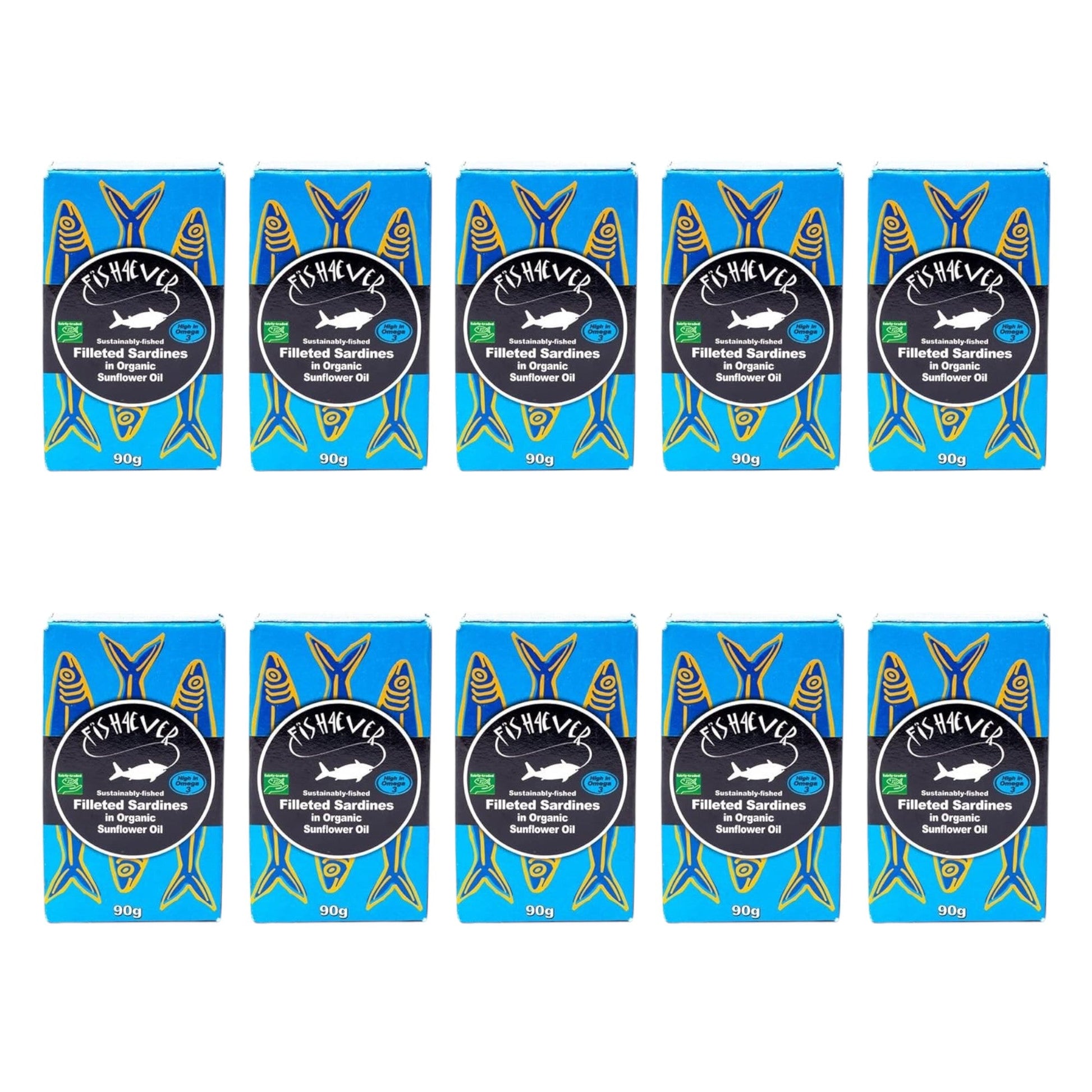 Fish4Ever Filleted Sardines in Organic Sunflower Oil 90g (Pack of 10)