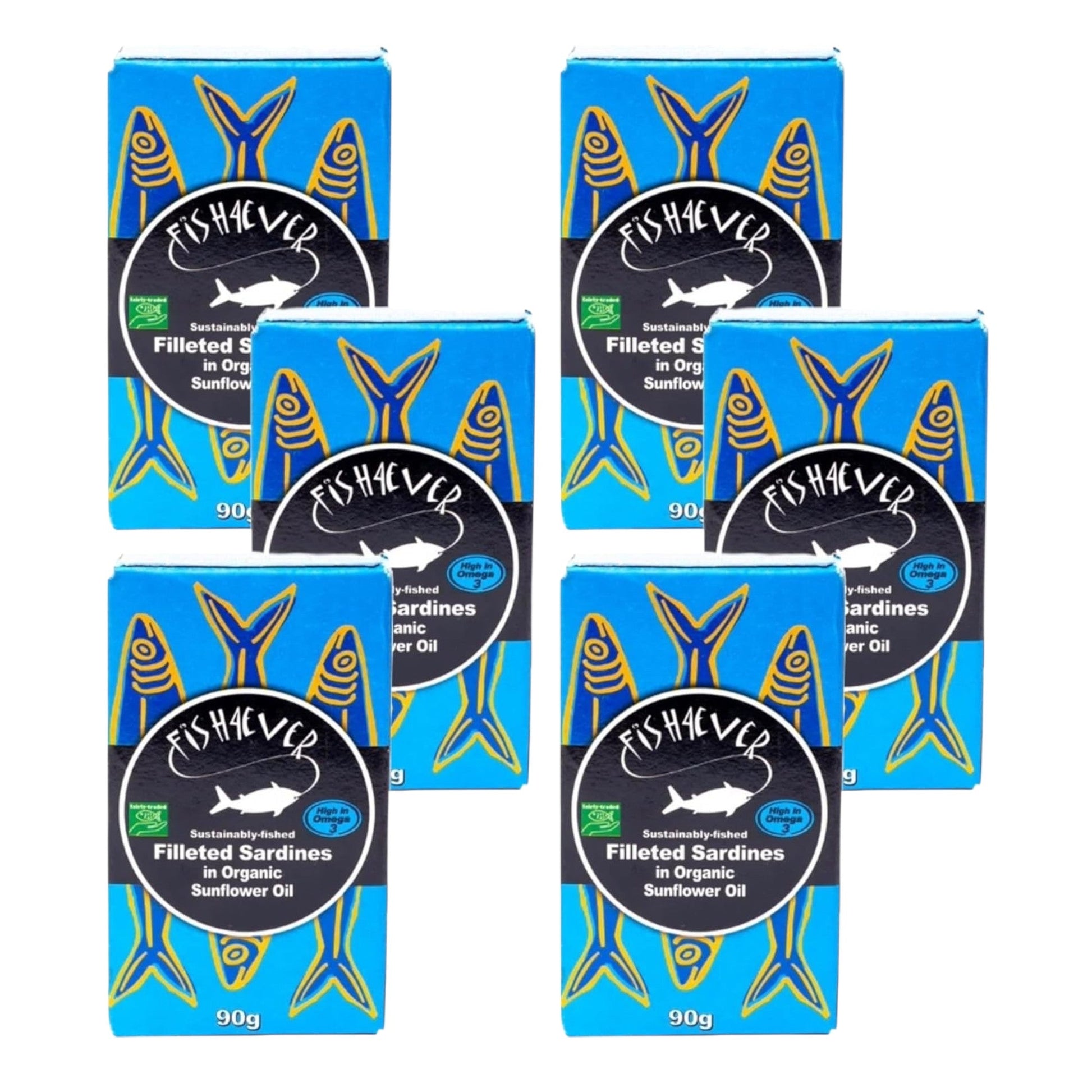 Fish4Ever Filleted Sardines in Organic Sunflower Oil 90g (Pack of 6)