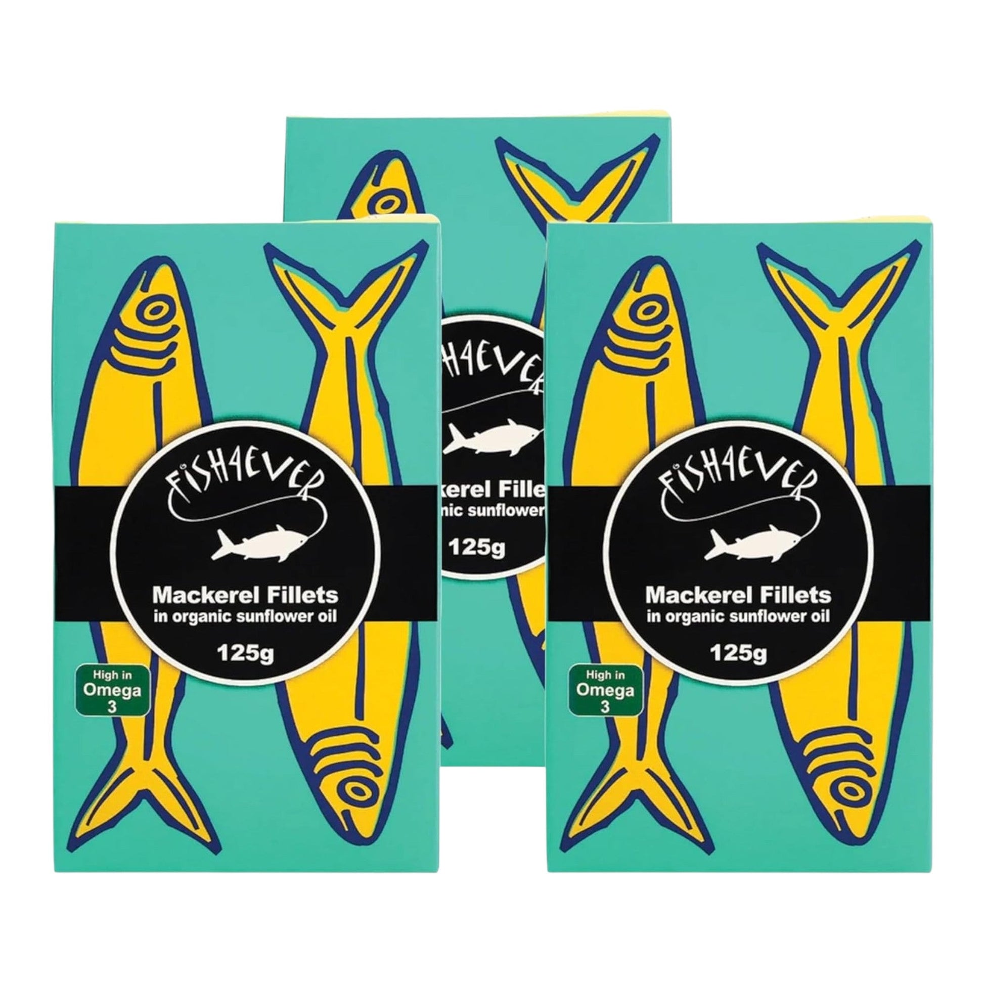 Fish4Ever Mackerel Fillets in Organic Sunflower Oil 125g (Pack of 3)