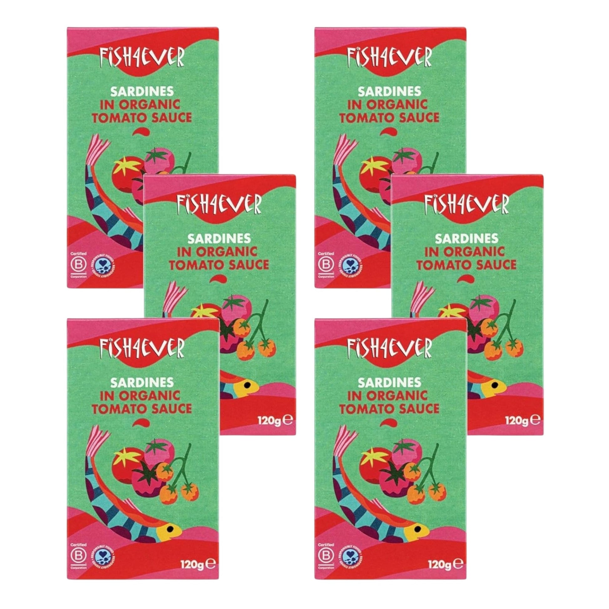 Fish4Ever Whole Sardines in Tomato Sauce 120g (Pack of 6)