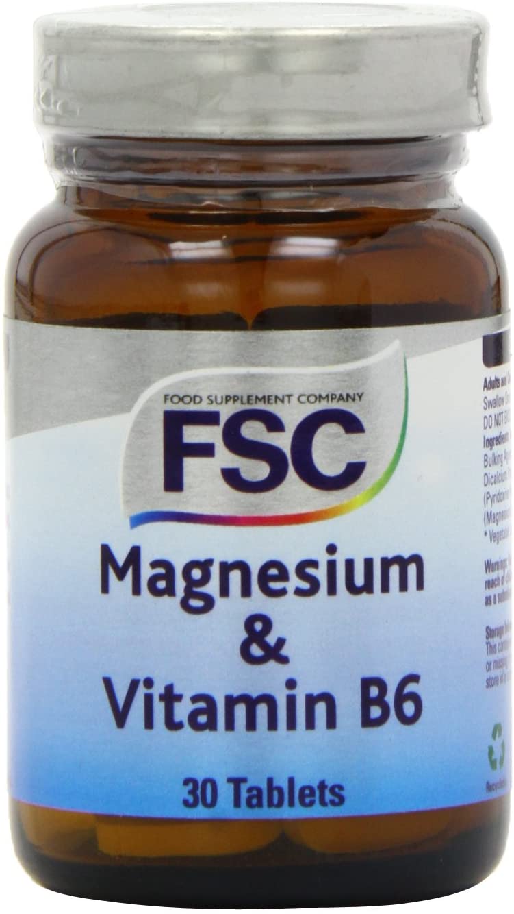 FSC magnesium and vitamin B6 30 tablets may assist energy production, growth and repair. Help to control blood sugar. Vitamin B6 assists its absorption. Contains no artificial flavours or preservatives, no added sugar, salt or colours, gluten free, wheat free, yeast free, dairy free, soya free and corn free. Suitable for vegans.