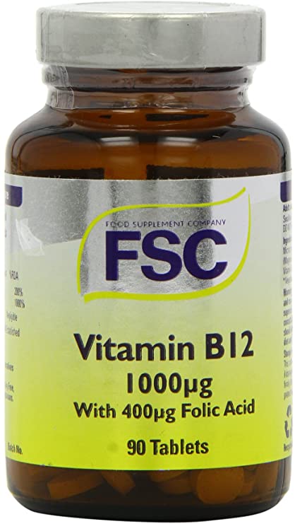 FSC 1000 ug vitamin B12 90 tablets with 400 ug folic acid may help with the synthesis of healthy red blood cells. Key vitamin that is lacking in vegan diets.