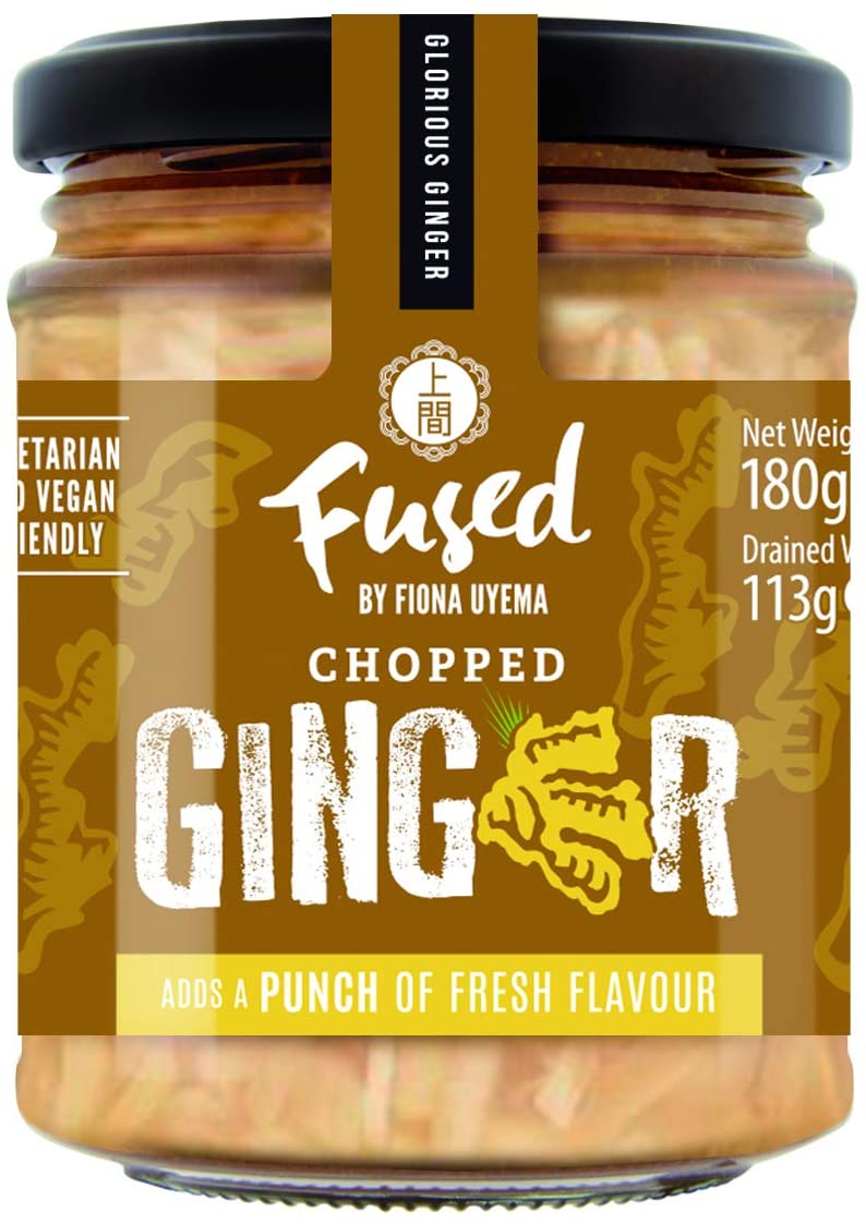Freshly Chopped Ginger preserved in vinegar. Fused key ingredients range – help to save on time and food waste in your household.