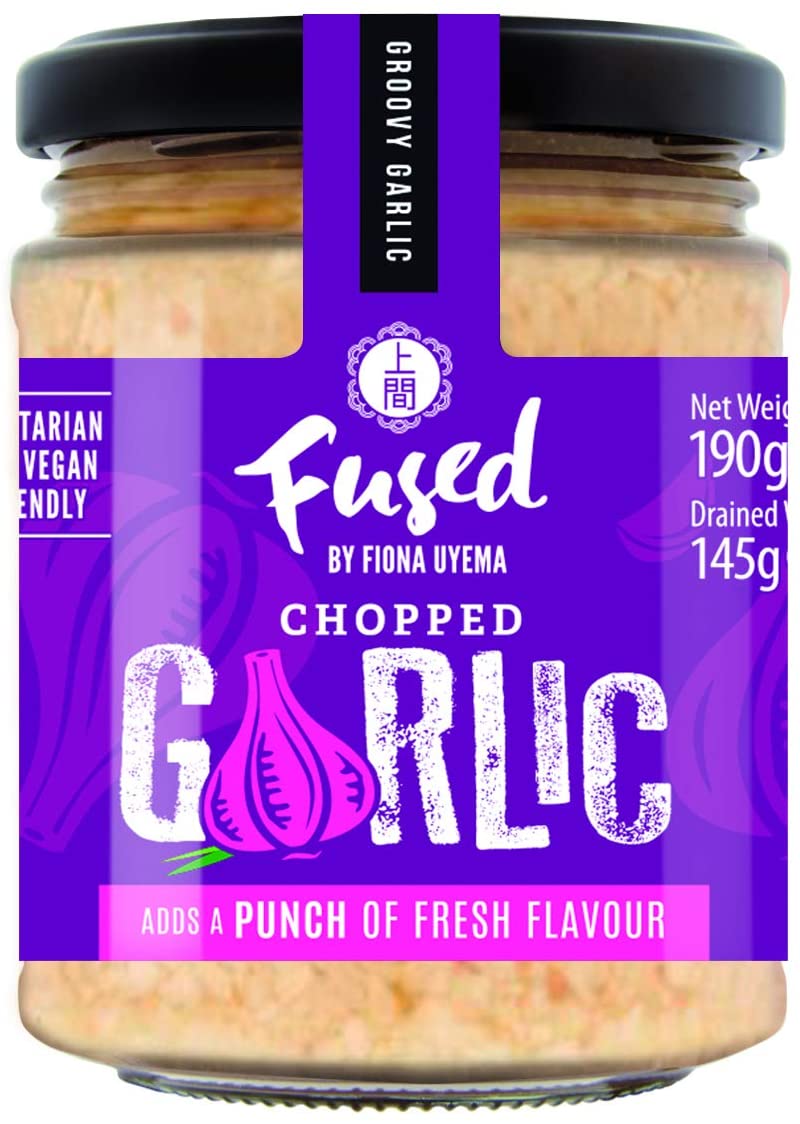 Freshly Chopped Garlic preserved in vinegar. Fused key ingredients range – help to save on time and food waste in your household.