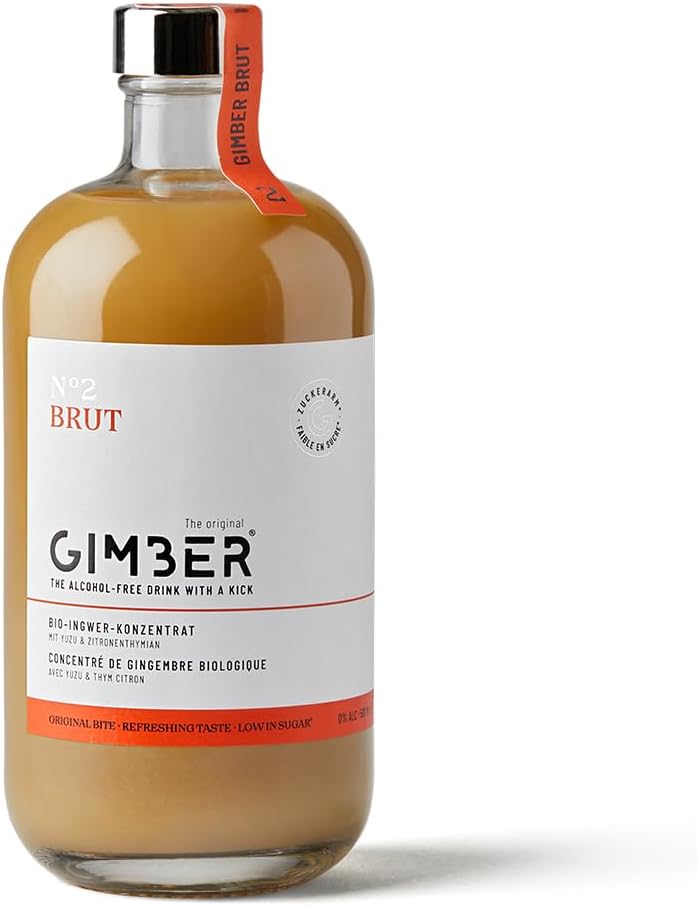 Gimber Organic Ginger Concentrate 500ml l New recipe l Less sugar l Alcohol-free organic drink made from ginger, yuzu fruit and lemon thyme | BRUT the new organic ginger concentrate