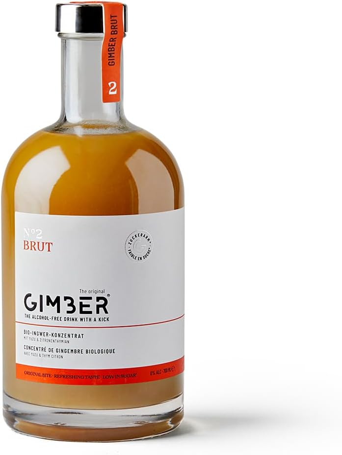 Gimber Organic Ginger Concentrate 700ml l New recipe l Less sugar l Alcohol-free organic drink made from ginger, yuzu fruit and lemon thyme | BRUT the new organic ginger concentrate