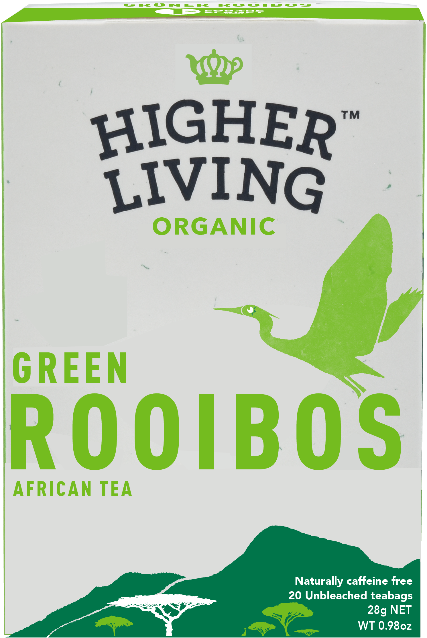 Higher Living Organic Green Rooibos. On a small organic farm amongst clean air and pure water streams of the Cedarberg Mountains, in South Africa, this rooibos is grown the same way it has been for centuries.