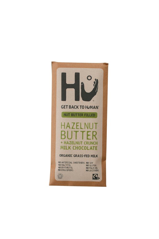 Organic Grass-Fed Milk Chocolate with No Weird Ingredients. Ever. Everyone's favorite hazelnut chocolate spread - made the Hu way. Our most indulgent bar ever combines hazelnut butter and chopped hazelnut pieces for a decadent treat that tastes just as good as it makes you feel.