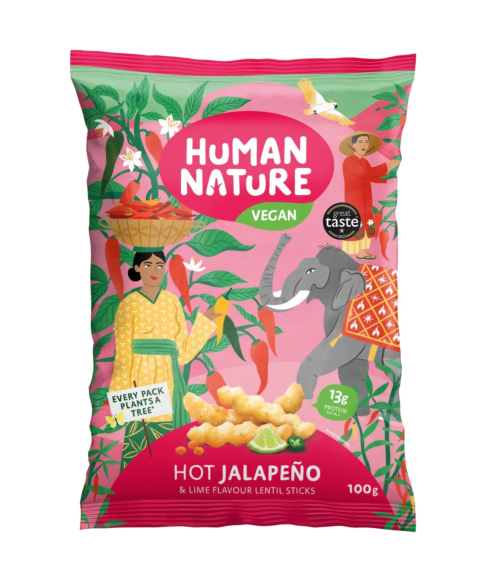 Human Nature Hot Jalapeno and Lime Flavour Lentil Sticks 100g (Pack of 10)