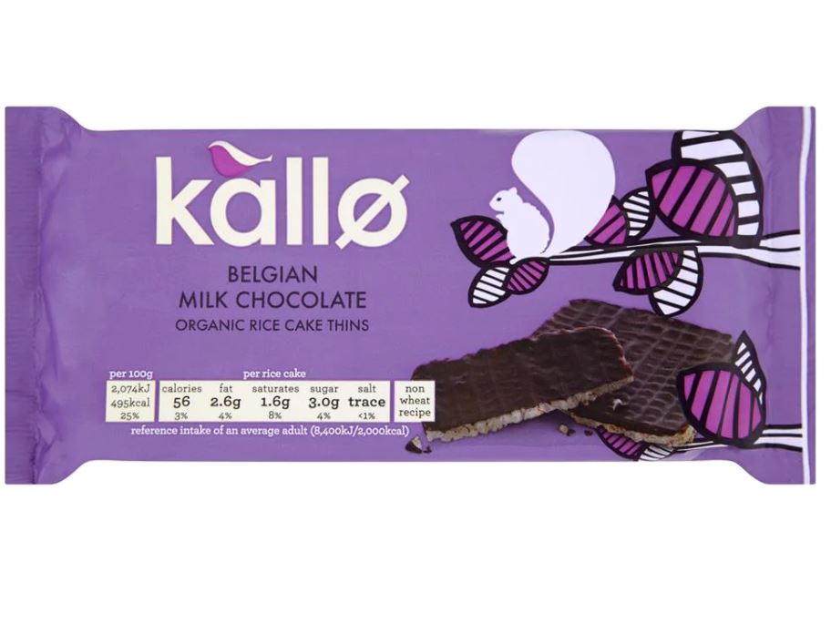 Kallo Organic Thin Slice Milk Chocolate Rice Cakes 90g (Pack of 16)