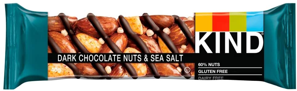 Kind Dark Chocolate Nuts & Sea Salt 40g Do the kind thing for your body, your taste buds & your world Here at Kind, we make delicious and nutritious snacks using the finest ingredients. Dark Chocolate Nuts & Sea Salt includes a sweet and salty blend of almonds, peanuts and a sprinkle of sea salt, bound together with a touch of honey and drizzled in chocolate. Our Nuts & Spices bars have 40% less sugar per 100g than similar snack bars.