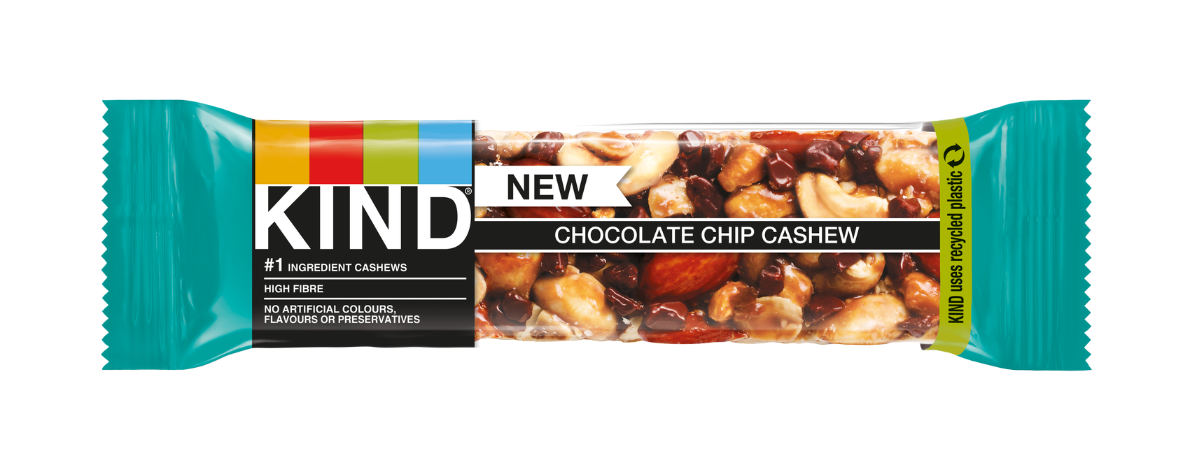 Kind Chocolate Chip Cashew bar, a delectable blend of crunchy cashews and smooth, velvety chocolate chips. Each satisfying bite is a delightful symphony of textures, offering a perfect balance of nuttiness and sweetness. Crafted with whole ingredients you can see and pronounce. Produced in a facility that is nut-free, ensuring safety for those with allergies.
