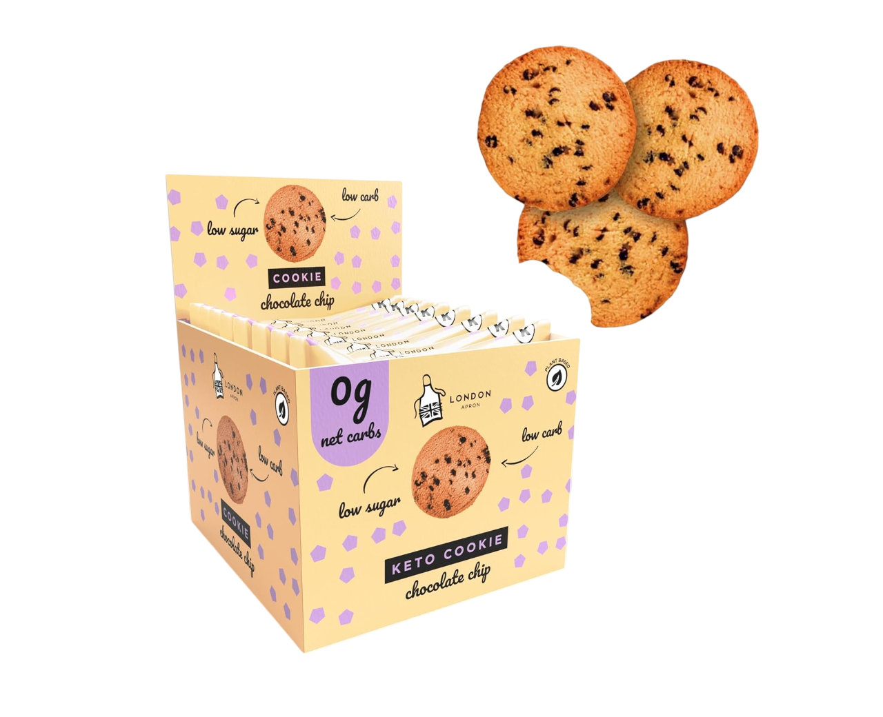 Expertly baked, London Apron chocolate chip cookies blend Belgian dark chocolate chips into the cookie dough, to create a delicious cookie experience free from excessive carbs or added sugars. A delectable treat packed with flavor and goodness in every bite. Crafted with care and precision, each 35g cookie is meticulously designed to cater to health-conscious individuals without compromising on taste.