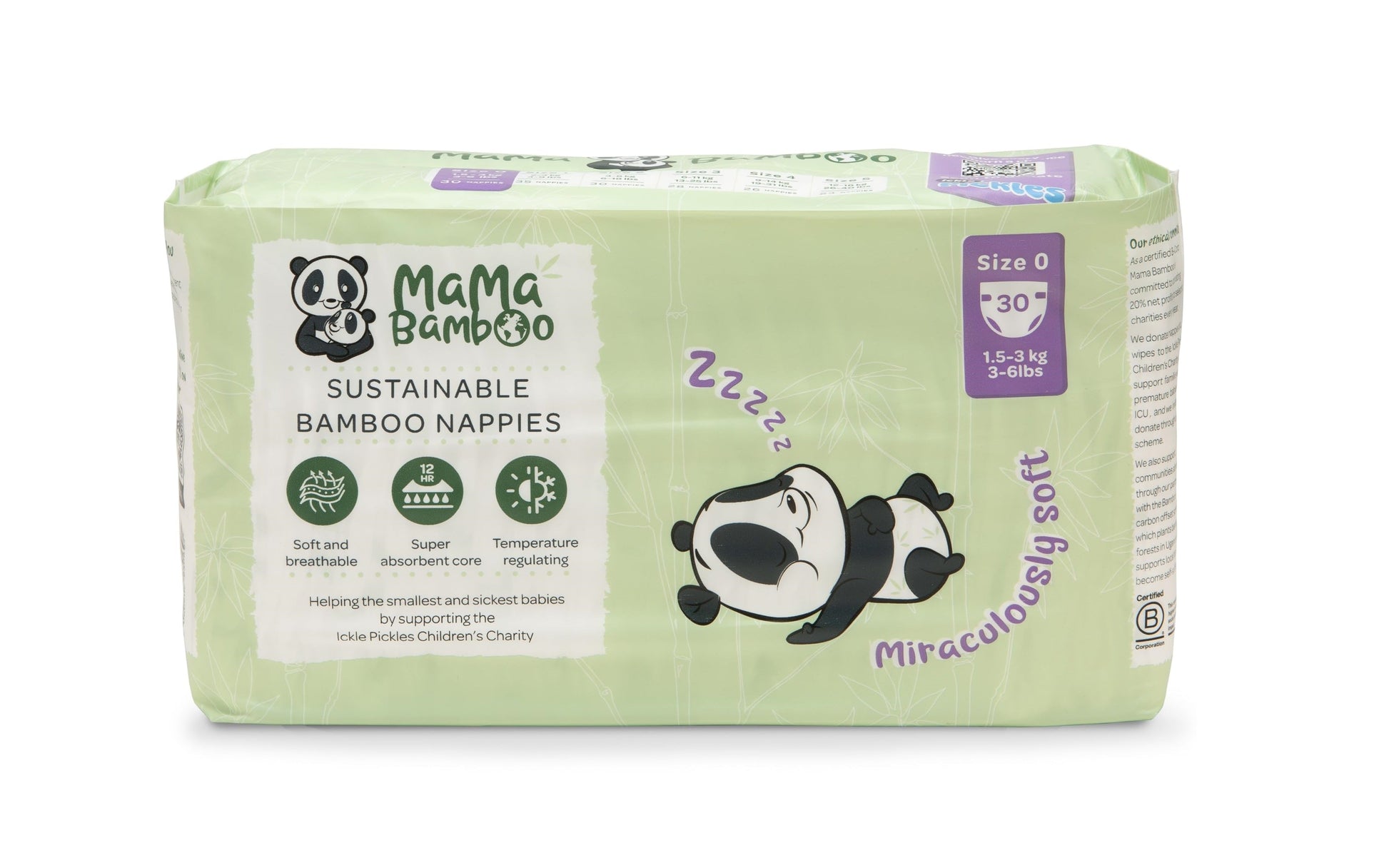 Mama Bamboo Eco Nappies - Size 0 (Tiny Baby) 30pc (Pack of 4)